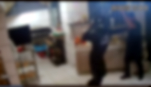 Nesse momento, a arma e os telefones caíram no chão. O aparelho de um dos clientes foi subtraído.