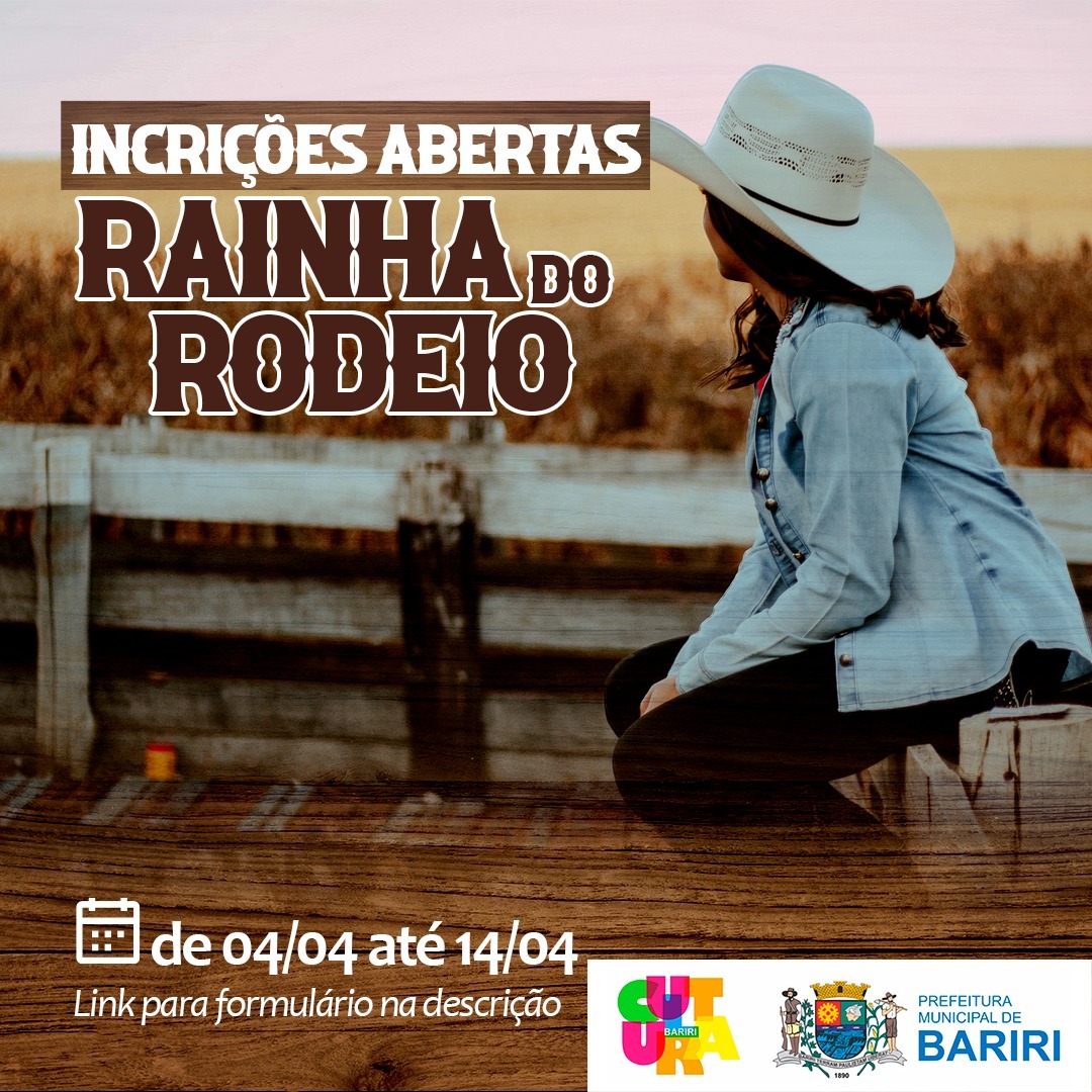 Terça-feira (04), têm início as inscrições para o concurso Rainha, Princesa e Madrinha do Rodeio de Bariri de 2023. A organização do concurso está sendo de responsabilidade do Setor de Cultura da Prefeitura de Bariri.