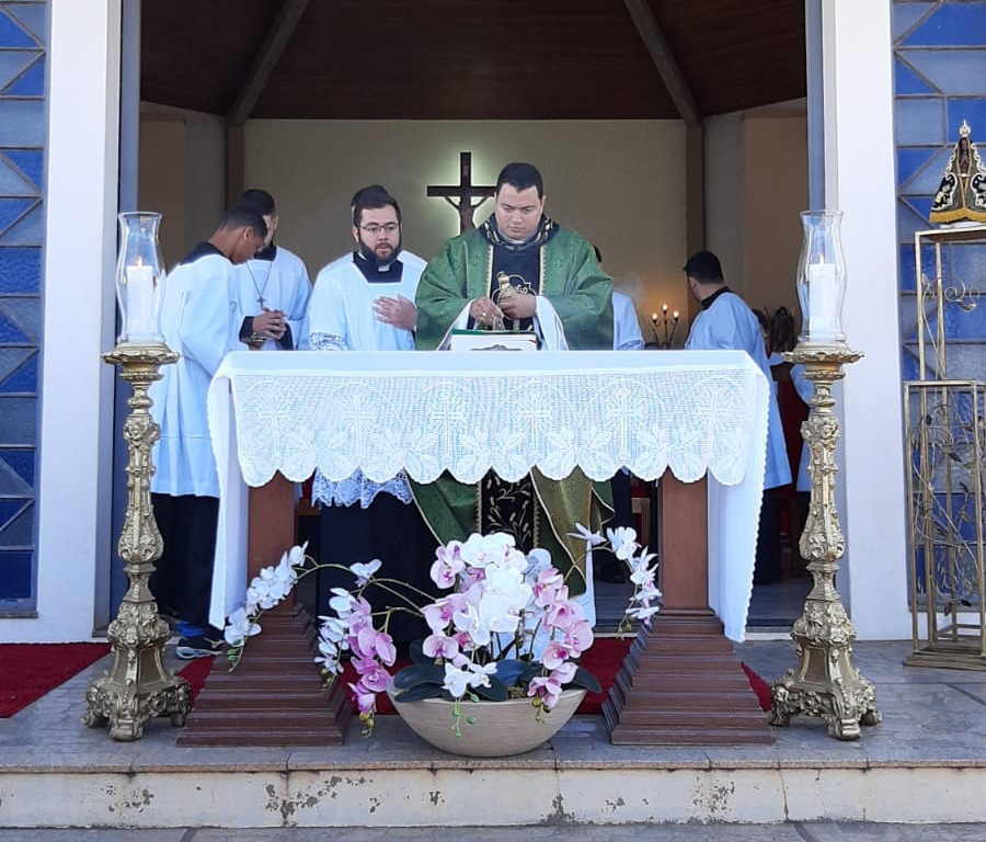 As celebrações em louvor ao padroeiro dos motoristas tiveram início às 9h30, com missa campal em frente ao Santuário, presidida pelo pároco Leandro Pimentel.