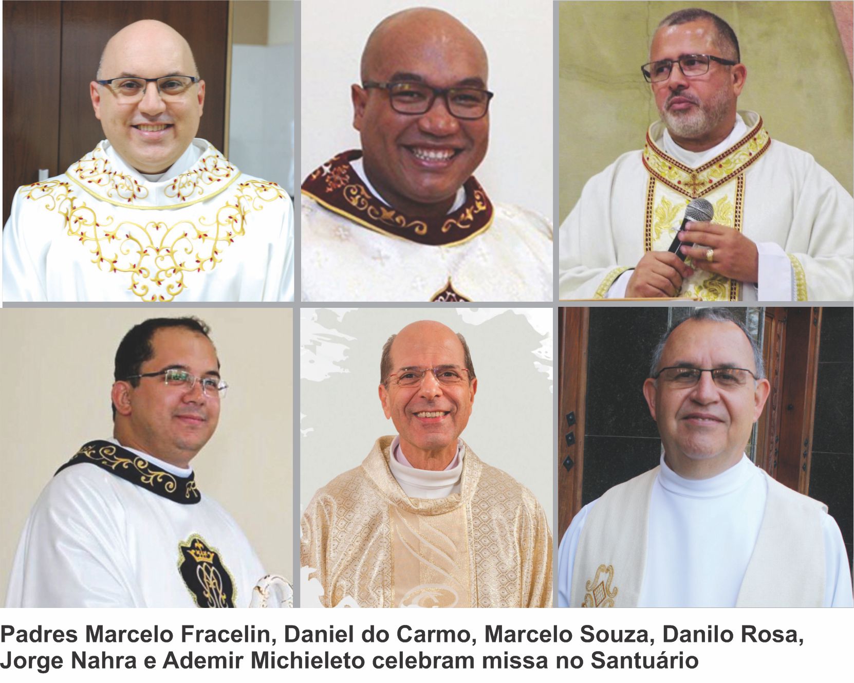 Padres Marcelo Fracelin, Daniel do Carmo, Marcelo Souza, Danilo Rosa, Jorge Nahra e Ademir Michieleto celebram missa no Santuário (Divulgação)