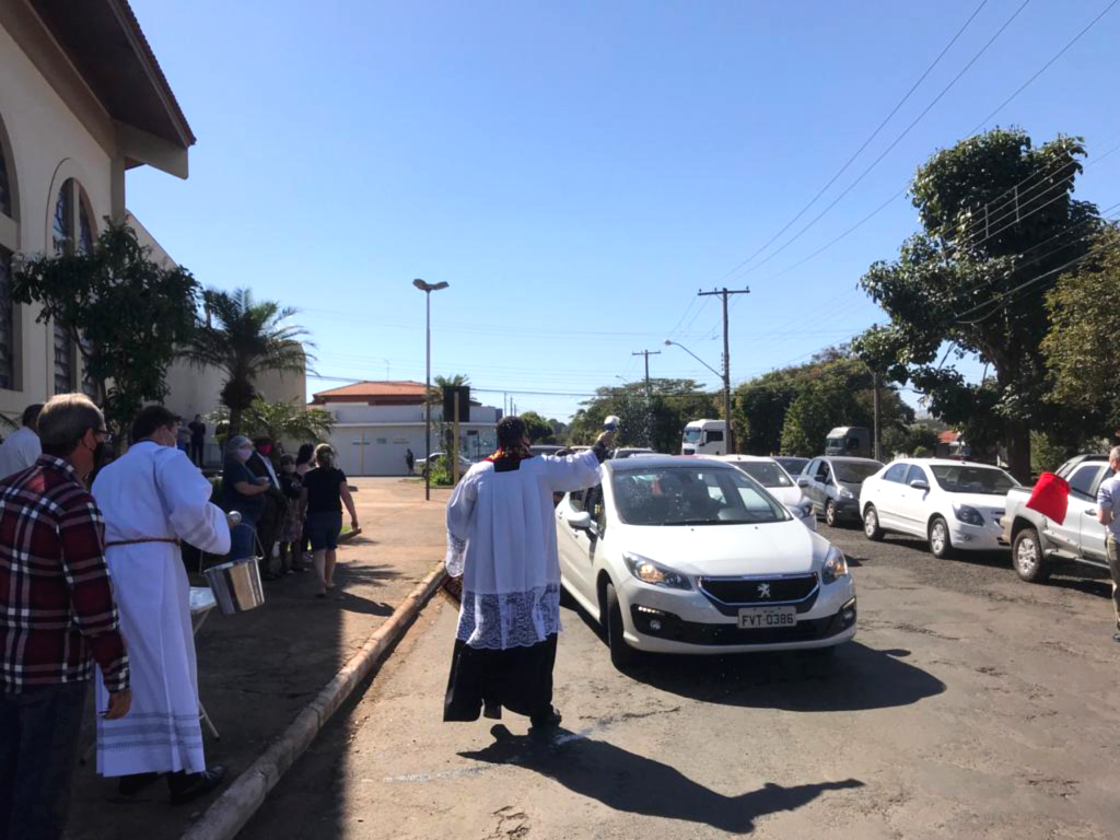 Após carreata, Padre Leandro realiza benção dos veículos defronte o Santuário (Arquivo Candeia)
