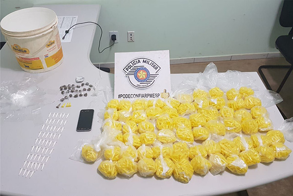 A Polícia Militar (PM) apreendeu 3.584 pinos com cocaína em poder de um jovem. A ação ocorreu na tarde de segunda-feira, dia 17, em residência situada no Jardim Domingos Aquilante, em Bariri.