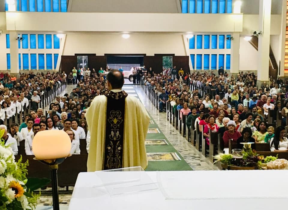 Às 10 horas da manhã, no Santuário de Nossa Senhora Aparecida, no Jardim Nova Bariri, Padre Leandro Pimentel celebrou a missa.