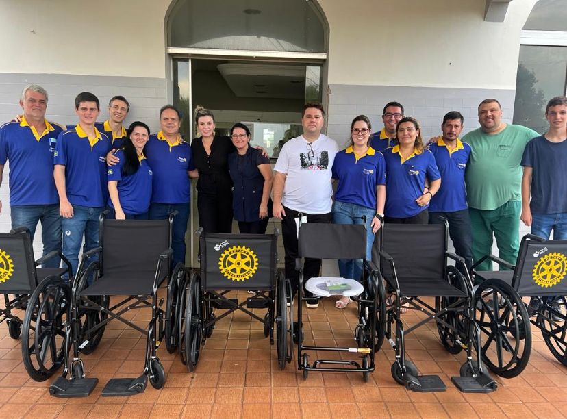 Dia 10, o Rotary fez entrega de cadeiras de roda e de banho à Santa Casa de Bariri.