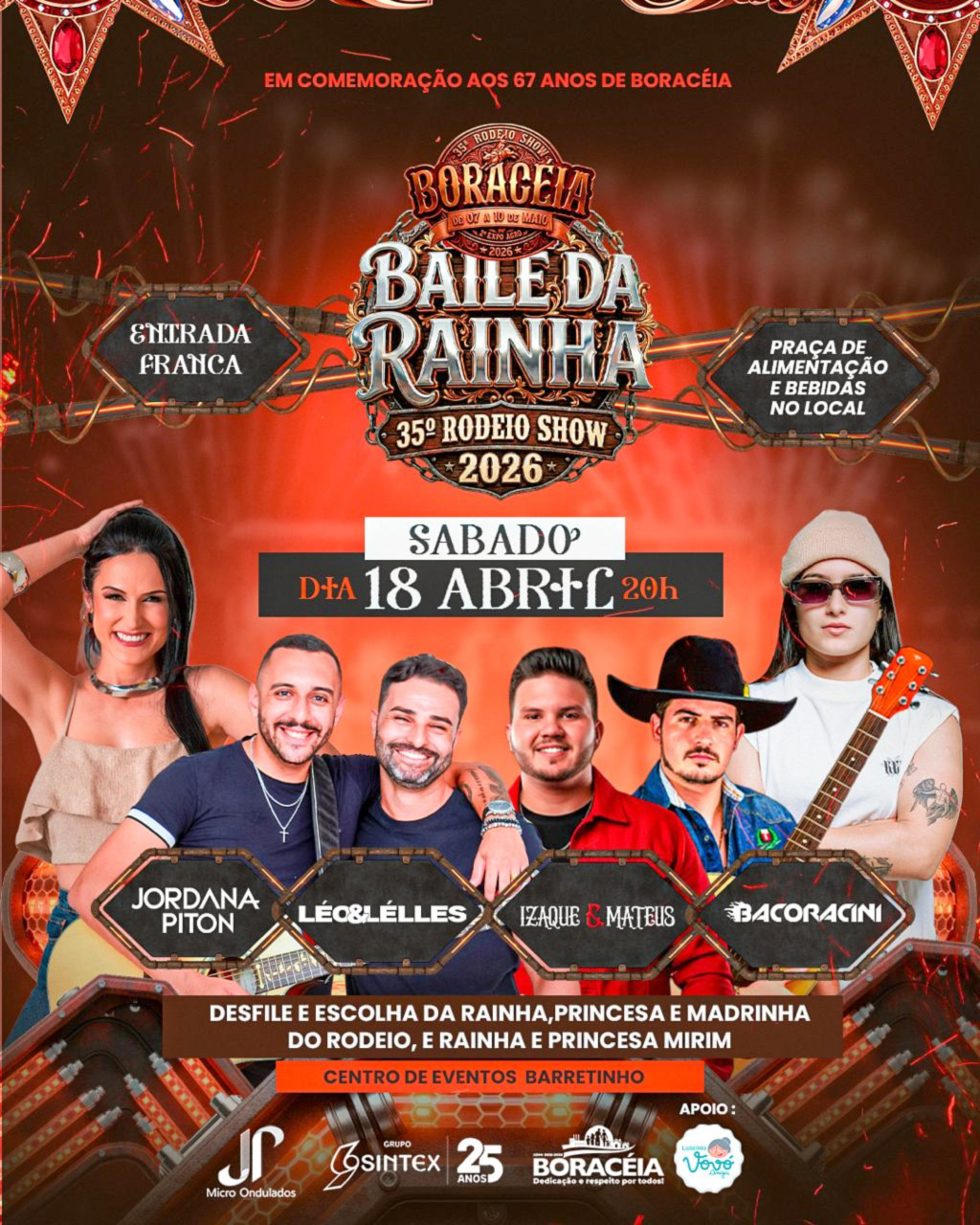 O Baile da Rainha do 35º Rodeio Show de Boraceia será no Centro Eventos Luiz Carlos Piton – Barretinho, com entrada franca (Divulgação)Neste sábado (18), a partir das 20h, ocorre o