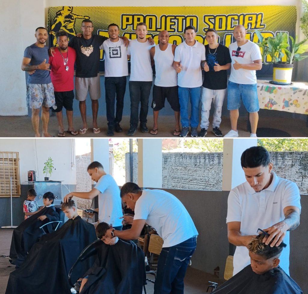 Projeto Amigos do Livra e Barbearia The Boss⁰¹ realizaram dezenas de cortes de cabelo gratuitos (Divulgação)