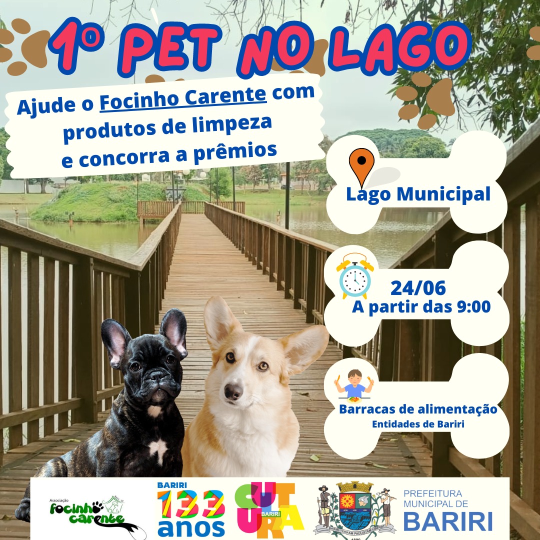 Neste sábado, a partir das 9h, será realizada a primeira edição do PET no Lago, com várias atrações envolvendo animais de estimação e arrecadação em prol do Abrigo de Animais.