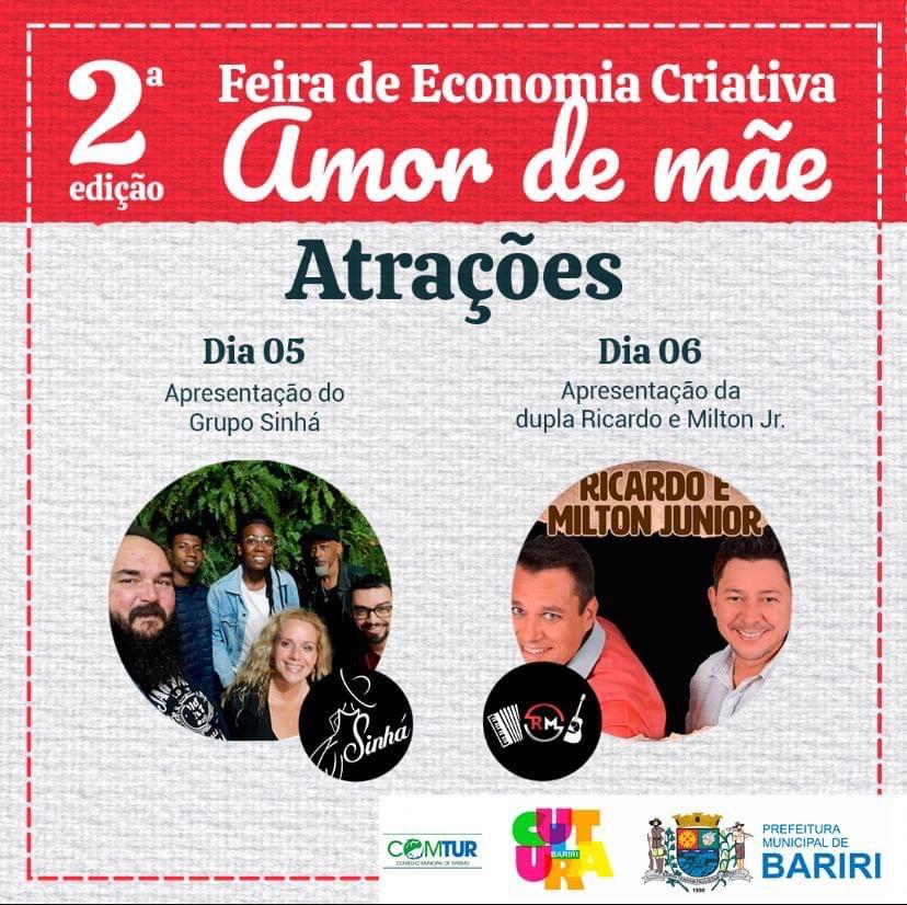Sexta-feira (5) e sábado (6), o Setor de Cultura da Prefeitura de Bariri realiza a 2ª edição da Feira de Economia Criativa Amor de mãe, na Praça da Matriz, a partir das 19h.