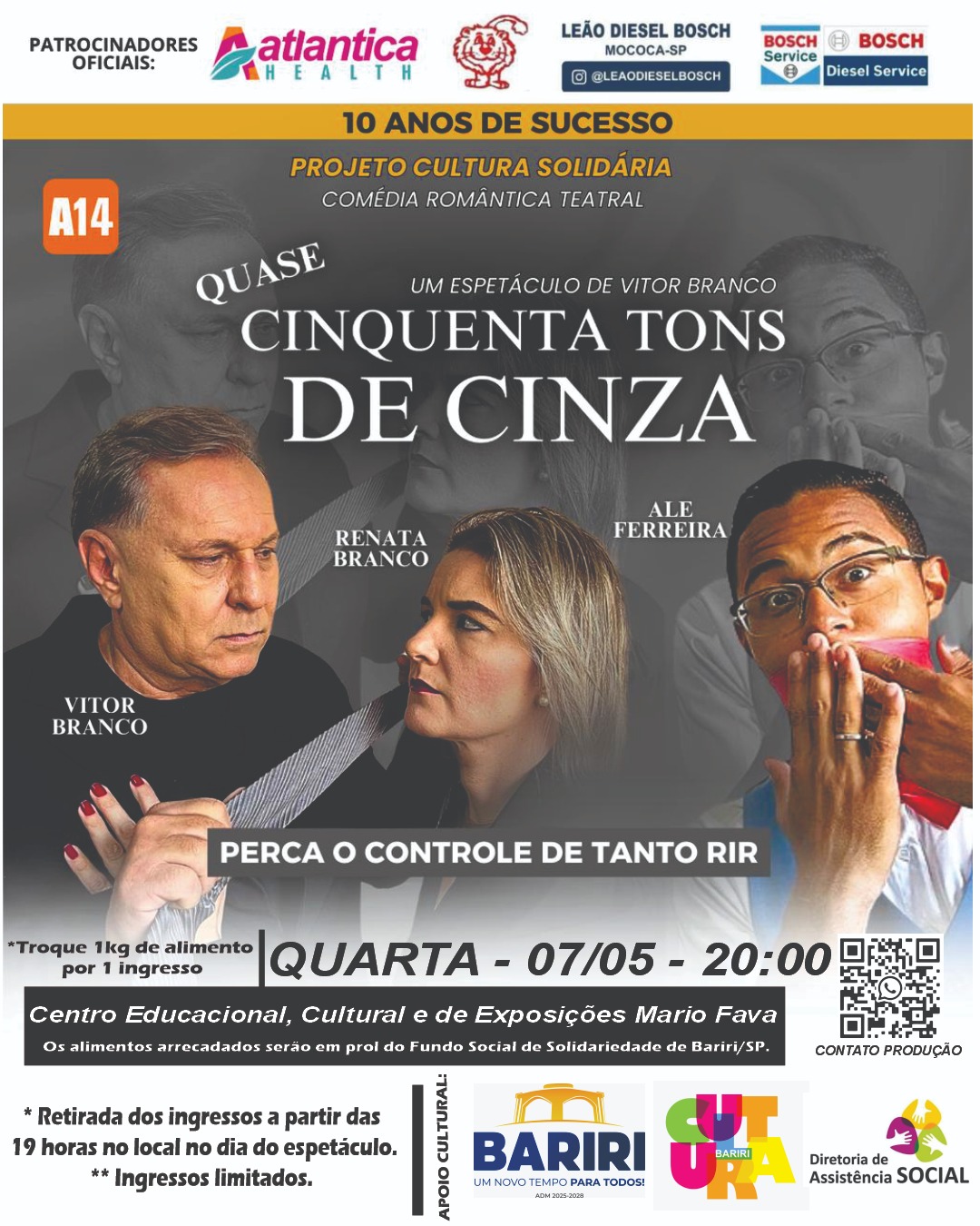 Em Bariri, a vinda da peça “Quase Cinquenta Tons de Cinza” está sob responsabilidade do Setor de Cultura da Prefeitura de Bariri e da Diretoria de Assistência Social.