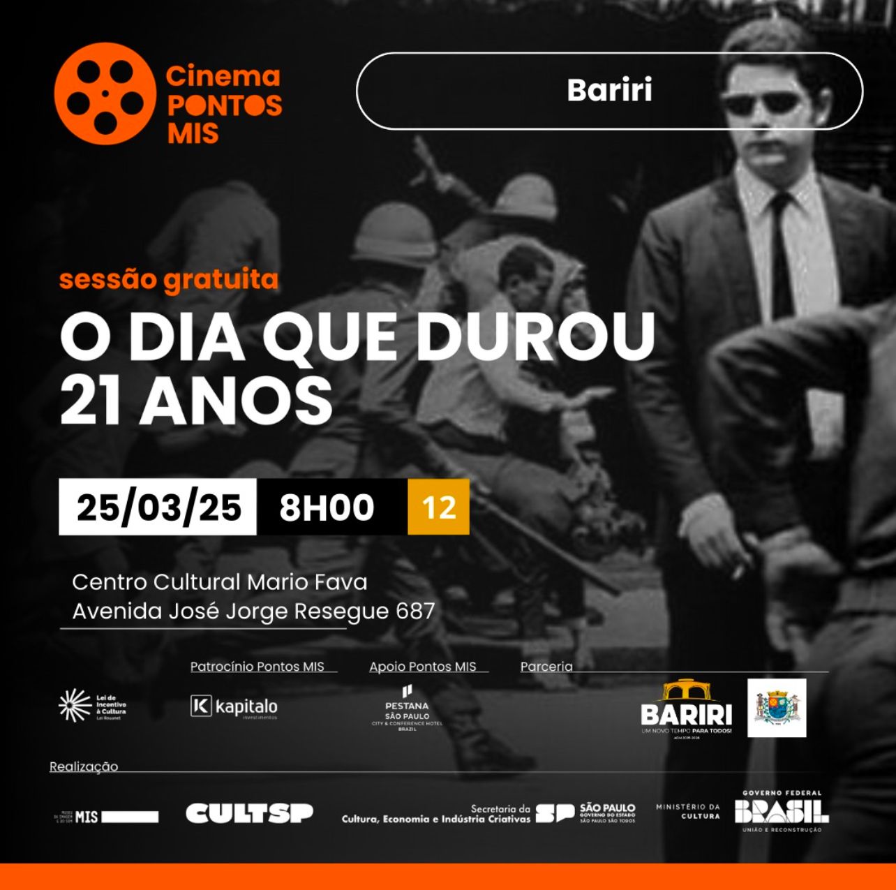Terça-feira (25), às 8h, ocorre exibição do documentário ‘O Dia que Durou 21 anos’, no Centro Educacional, Cultural e de Exposição Mario Fava.
