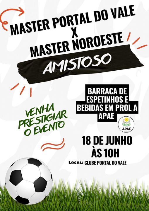 Neste domingo (18), será realizado jogo amistoso entre as equipes Máster Portal do Vale x Máster Noroeste, a partir das 10h da manhã, no campo do Portal.