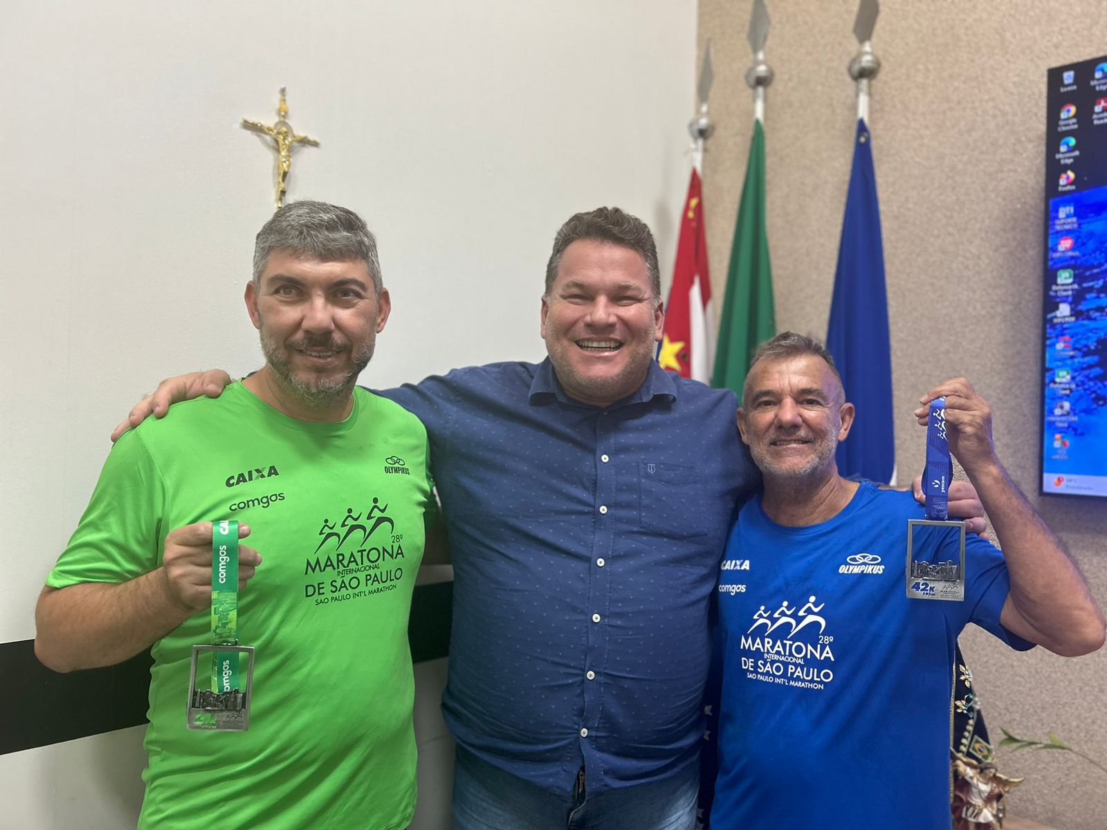 O prefeito Luis Fernando Foloni (MDB) recepcionou João Ricardo e Norberto com as medalhas obtidas na tradicional prova.