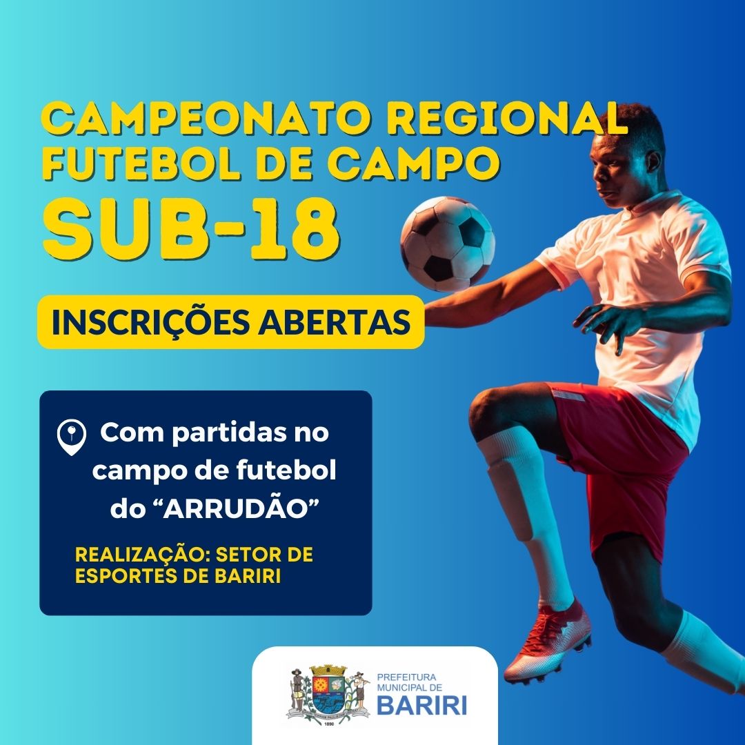 A Diretoria de Esportes da Prefeitura de Bariri abriu inscrições para o Campeonato Regional de Futebol de Campo Sub-18 de Bariri, para atletas nascidos em 2007.