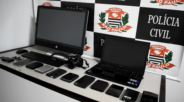 Computadores e aparelhos celulares apreendidos em Casa Branca — Foto: Ary Molinari/ Polícia em Ação