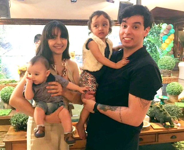Iara e Nicolas, com os filhos Helena e Noah: família de Jaú tenta levantar R$ 81 mil para a cirurgia — Foto: Arquivo pessoal