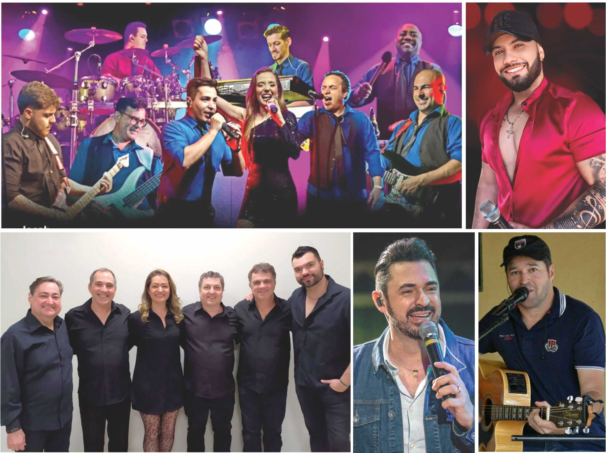 Matéria Prima (neste sábado); André Marques (17/01); Doce Veneno (20/01), Marcos Ferratini (24/01) e Paulinho Moura (1º/02) são as atrações da festa de Itaju (Fotos Divulgação)