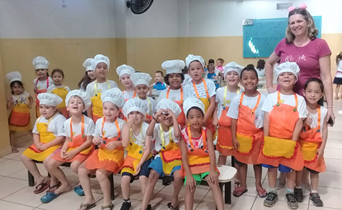 O objetivo foi a produção de brigadeiros e cupcakes, com a participação de alunos de primeiras e segundas fases. Durante a atividade, os alunos estavam devidamente uniformizados com avental e touca para produzir e decorar as guloseimas.