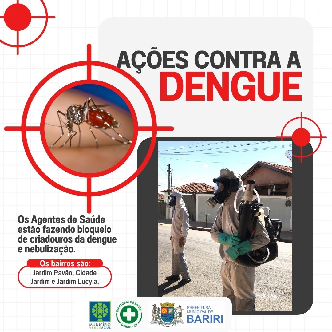 Atualmente, os agentes fazem o bloqueio de controle de criadouros no Jardim Pavão. Já a nebulização ocorre essa semana no Bairro Cidade Jardim. No próximo sábado (16), a nebulização vai acontecer no Jardim Lucyla.
