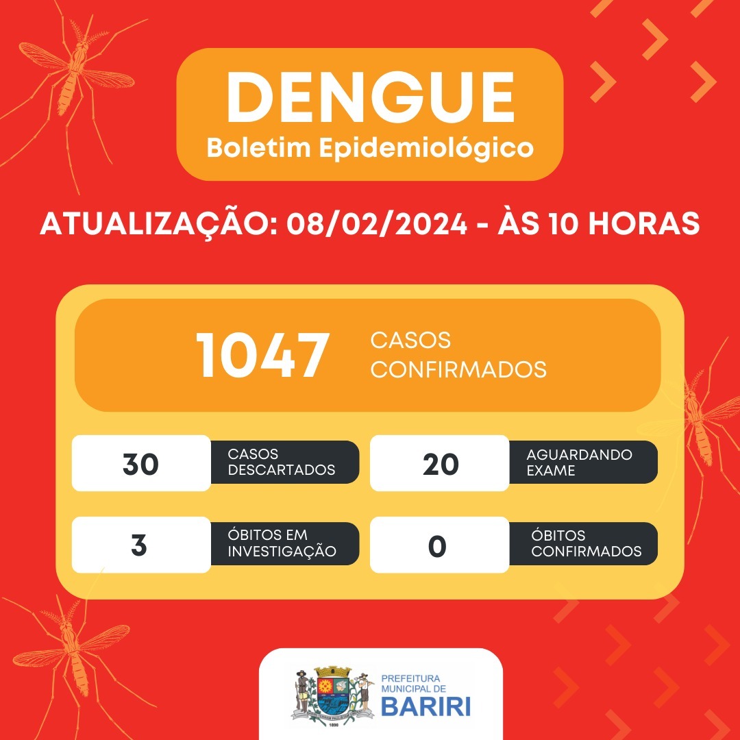 Diante do grande número de casos confirmados e suspeitos de dengue no município, a Prefeitura de Bariri, por meio da Diretoria de Saúde e da Vigilância Epidemiológica, passará a divulgar diariamente os dados da doença.