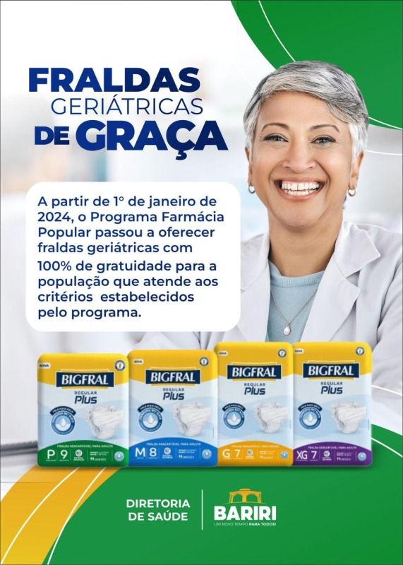 O governo federal publicou a portaria nº 6.613, de 2025, que regulamentou o fornecimento de fraldas geriátricas gratuitas a pessoas idosas (a partir de 60 anos) e/ou com deficiência em todo o território nacional, por meio do Programa Farmácia Popular.